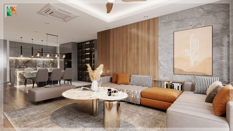 Trang trí phòng khách chung cư cao cấp phù hợp với không gian phòng khách của cả những căn hộ vừa và rộng.
