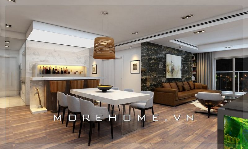 Nội thất phòng ăn hiện đại và đơn giản phù hợp với nhà chung cư được thiết kế.